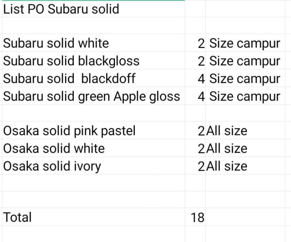 Dengan minimal pembelian Grosir untuk toko adalah 1 Colly ( 18 pcs ) boleh campur antara solid dan motif. hubungi admin kami untuk mengetahui harga terbaru.